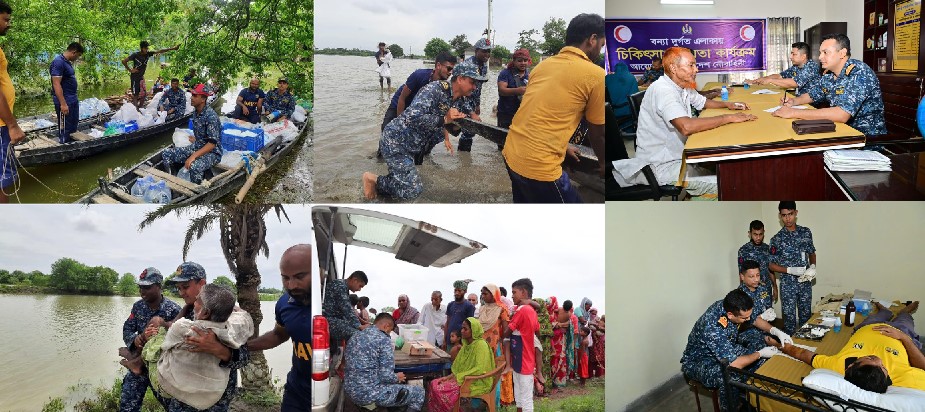 এদিকে অন্যান্য দিনের মতো বন্যা কবলিত এলাকায় ত্রাণ ও পুনর্বাসন কার্যক্রমও অব্যাহত রয়েছে। পরিস্থিতি স্বাভাবিক না-হওয়া পর্যন্ত নৌবাহিনীর এই মানবিক প্রয়াস অব্যাহত থাকবে।