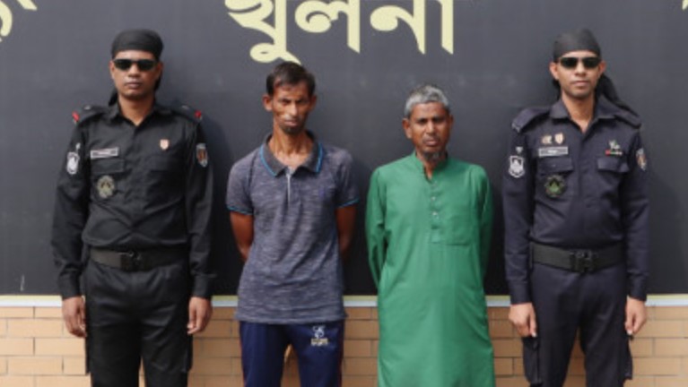 জন্মভূমি রিপোর্ট : বাগেরহাট জেলার চরবড়বাড়িয়া গাইনপাড়া গ্রামের ক্ষীতিশ চন্দ্র গাইন হত্যা মামলার দুই আসামি গ্রেফতার হয়েছে। র্যাব-৬ এর একটি টিম শুক্রবার সকালে গোপন সংবাদের ভিত্তিতে গোপালগঞ্জ জেলার পৃথক দুইটি থানা এলাকায় অভিযান চালিয়ে তাদের গ্রেফতার করে। জমি-জমা নিয়ে বিরোধের জেরে গত ১৪ নভেম্বর প্রথম প্রহরে ঘাতকেরা তাকে এলোপাতাড়ি মারপিট ও ধাঁরালো অস্ত্রাঘাতে খুন করে। র্যাব জানায়, আসামি নূর মোহাম্মদ (৬০) কে গোপালগঞ্জের কোটালীপাড়া থানাধীন বানারজোর গ্রামের একটি বাড়ী থেকে গ্রেফতার করা হয়। আরেক আসামি মোঃ শফিনুর শেখ (৪০) কে কাশিয়ানি থানার কুশুমদিয়া গ্রামের একটি বাড়ী থেকে গ্রেফতার করা হয়। অভিযুক্তরা বাগেরহাটের চিতলমারী উপজেলার চর বড়বাড়িয়া গাইনপাড়া গ্রামর বাসিন্দা। প্রাথমিক জিজ্ঞাসাবাদে তারা হত্যাকাণ্ডে জড়িত থাকার কথা স্বীকার করেছে। এ রিপোর্ট লেখা পর্যন্ত সময়ের মধ্যে তাদেরকে থানা পুলিশের কাছে হস্তান্তর করা হয়েছিল। গত ১৩ নভেম্বর রাত ১১ টার দিকে নিহত ক্ষীতিশের সাথে জমি নিয়ে বিবাদমান পক্ষের সালিশ অনুষ্ঠিত হয় এবং বিরোধ মিমাংশা হয়ে যায়। কিন্তু রাত পৌনে একটার দিকে প্রতিপক্ষের লোকেরা ক্ষীতিশের বাড়ীতে অনধিকার প্রবেশ করে অশ্রাব্য বাক্য প্রয়োগ শুরু করে। উভয় পক্ষের মধ্যে ঝগড়ার এক পর্যায়ে আসামিরা ক্ষীতিশের ওপর হামলে পড়ে। শুরু করে বেধড়ক মারপিট। একপর্যায়ে হামলাকারীদের একজন ভিকটিমের গলায় ও বুকে ছুরিকাঘাত করে পালিয়ে যায়। এরপর স্থানীয়রা তাকে উদ্ধার করে চিতলমারী স্বাস্থ্য কমপ্লেক্সে নিয়ে যান। তখন কর্তব্যরত চিকিৎসক তাকে মৃত বলে ঘোষণা করেন। এ ঘটনায় নিহতের ছেলে পরিকল্পিত হত্যাকাণ্ডের অভিযোগে থানায় একটি মামলা দায়ের করেন। সংশ্লিষ্ট সূত্রে এ তথ্য জানা গেছে।