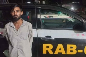 ডেস্ক রিপোর্ট : বাগেরহাটের মোরেলগঞ্জ থানার অস্ত্র ও মাদক মামলায় মোট ১৫ বছরের সাজাপ্রাপ্ত পলাতক আসামি মো. ইমরান সরদারকে গ্রেফতার করেছে র্যাপিড অ্যাকশন ব্যাটালিয়ন (র্যাব)-৬। রোববার (১২অক্টোবর) রাত সাড়ে ১০টার দিকে সংবাদ কর্মীদের দেওয়া এক প্রেস বিজ্ঞপ্তির মাধ্যমে র্যাপিড অ্যাকশন ব্যাটালিয়ন (র্যাব)-৬ এ তথ্য নিশ্চিত করেছে। গ্রেফতার ইমরান সরদার মোরেলগঞ্জ উপজেরার উত্তর চিংড়াখালী গ্রামের লোকমান সরদারের ছেলে। মোরেলগঞ্জ থানার অফিসার ইনচার্জ (ওসি) মো. মতলুবর রহমান জানান, খুলনা র্যাব-৬ এর সিপিসি সদর কোম্পানির একটি চৌকস দলের সহযোগিতায় শনিবার (১২ অক্টোবর) খুলনা মহানগরীর সোনাডাঙ্গা থানা এলাকায় বিশেষ অভিযান পরিচালনা করে ইমরান সরদারকে গ্রেফতার করা হয়। গ্রেফতার ইমরান সরদার অস্ত্র মামলায় ১০ বছর এবং মাদক মামলায় ৫ বছর ৫ মাসের সাজাপ্রাপ্ত ছিলেন। দীর্ঘদিন ধরে তিনি পলাতক ছিলেন। ওসি আরও জানান, গ্রেফতার ইমরান সরদার মোরেলগঞ্জ থানা হেফাজতে রয়েছে। সোমবার সকালে ইমরানকে বাগেরহাট বিজ্ঞ আদালতে প্রেরণ করা হবে।