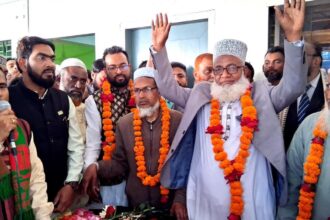 ফকিরহাট প্রতিনিধি : বাগেরহাট-১ আসন থেকে জয়ের পর বাংলাদেশ জামায়াতে ইসলামীর বিজয়ী প্রার্থী অধ্যক্ষ মশিউর রহমান খান ফকিরহাটের নেতাকর্মি ও সমর্থকদের সাথে শুভেচ্ছা ও মতবিনিময় করেন। এসময় নেতা-কর্মিরা তাকে ফুলেল শুভেচ্ছা জানান। শনিবার (১৪ ফেব্রুয়ারি) দুপুর ১২ টায় ফকিরহাট উপজেলা জামায়াতে ইসলামীর কার্যালয়ে মতবিনিময় সভার আয়োজন করা হয়। বাগেরহাট-১ আসন থেকে বিজয়ী প্রার্থী অধ্যক্ষ মশিউর রহমান খান বলেন, সকলের প্রতি ন্যায় ইনসাফ ভিত্তিক আচরন করা হবে। ১২ ফেব্রুয়ারি নির্বাচনে যারা আমাকে ভোট দিয়েছেন বা দেননি সবাই সমান সুযোগ-সুবিধা পাবেন। এ আসনে বসবাসকারী মুসলিম ধর্মাবলম্বীরা যে অধিকার পাবেন, সনাতন ধর্মাবলম্বীরা সেই সুযোগ-সুবিধা পাবেন। জাতি ধর্ম বর্ণ নির্বিশেষে সবার সমান অধিকার নিশ্চিত করবো। এছাড়া চাঁদাবাজ, সন্ত্রাস ও মাদকমুক্ত সমাজ গড়ার অঙ্গিকার করেন। এসময় তিনি আরো বলেন, ‘আমরা সম্প্রীতির রাজনৈতিক সংস্কৃতি গড়তে চাই। বিএনপি সরকার গঠন করবেন। আমরা তাদের সাথে কাঁধে কাঁধ মিলিয়ে দেশ গঠনে সহায়তা করতে চাই। আমি আজ সকালেই বিজিত প্রার্থী কপিল কৃষ্ণ মন্ডলের বাড়ি গিয়ে দেখা করে শুভেচ্ছা বিনিময় করেছি। অনুষ্ঠানে সভাপতিত্ব করেন বাংলাদেশ জামায়াতে ইসলামী ফকিরহাট উপজেলা শাখার আমির মাওলানা এবিএম তৈয়াবুর রহমান। উপজেলা সেক্রেটারি আবুল আলা মাসুমের সঞ্চালনায় অন্যান্যদের মধ্যে বক্তব্য রাখেন বাগেরহাট বায়তুল মাল সেক্রেটারী মাওলানা আবু বকর সিদ্দিক, নির্বাচনী প্রধান এজেন্ট অধ্যাপক মোফাজ্জল হায়দার, এনসিপি বাগেরহাট জেলা কমিটির সিনিয়র সদস্য মো. লাবীব আহম্মেদ প্রমূখ। এসময় সহকারী সেক্রেটারি শেখ সুমন হোসেনসহ বিভিন্ন নেতাকর্মি ও সমর্থক উপস্থিত ছিলেন।