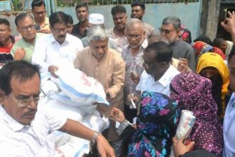 মনিরামপুর প্রতিনিধি : বিএনপির খুলনা বিভাগীয় ভারপ্রাপ্ত সাংগঠনিক সম্পাদক অনিন্দ্য ইসলাম অমিত বৃহস্পতিবার যশোরের মনিরামপুর উপজেলার বন্যাকবলিত বিভিন্ন এলাকার মানুষের মাঝে ত্রাণ সামগ্রী বিতরণ ও সনাতন ধর্মাবলম্বীদের সাথে শারদীয় শুভেচ্ছা বিনিময় করেন। এ দিন অনিন্দ্য ইসলাম অমিত প্রথমে মনিরামপুর উপজেলার শ্যামকুড় ইউনিয়নের চিনাটোলা বাজারে বন্যাদুর্গত মানুষের মাঝে ত্রাণ বিতরণ করেন। পরে তিনি চিনাটোলা বাজারের সার্বজনীন দুর্গা মন্দির পরিদর্শন শেষে সনাতন ধর্মাবলম্বীদের সাথে শারদীয় শুভেচ্ছা বিনিময় করেন। পরে তিনি কুলটিয়া ইউনিয়নের পোড়াডাঙ্গা গ্রামের গাজীর মোড়ে ত্রাণ বিতরণ করেন।
