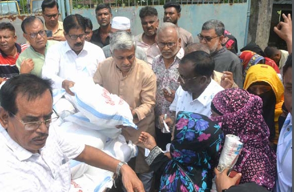 বিএনপির কেন্দ্রীয় নেতা অমিতের ত্রানসামগ্রি বিতরণ ও দূর্গামন্দির পরিদর্শন