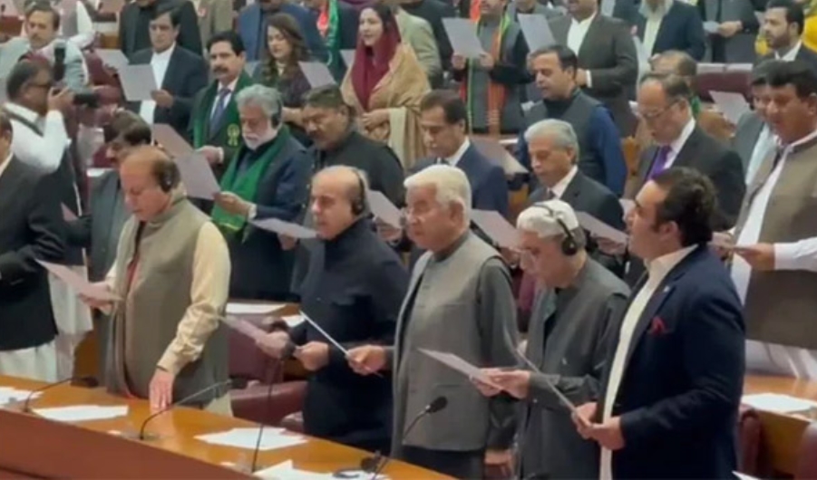 জন্মভূমি ডেস্ক : নির্বাচনের তিন সপ্তাহ পর পাকিস্তানের জাতীয় পরিষদের নবনির্বাচিত সদস্যদের শপথগ্রহণ অনুষ্ঠিত হয়েছে। বৃহস্পতিবার দেশটির সংসদের নিম্নকক্ষে কারাবন্দি সাবেক প্রধানমন্ত্রী ইমরান খানের রাজনৈতিক দল পাকিস্তান তেহরিক-ই-ইনসাফ (পিটিআই) সমর্থিত সদস্যদের ব্যাপক হট্টগোল আর বিক্ষোভের মাঝে এই শপথ অনুষ্ঠিত হয়।