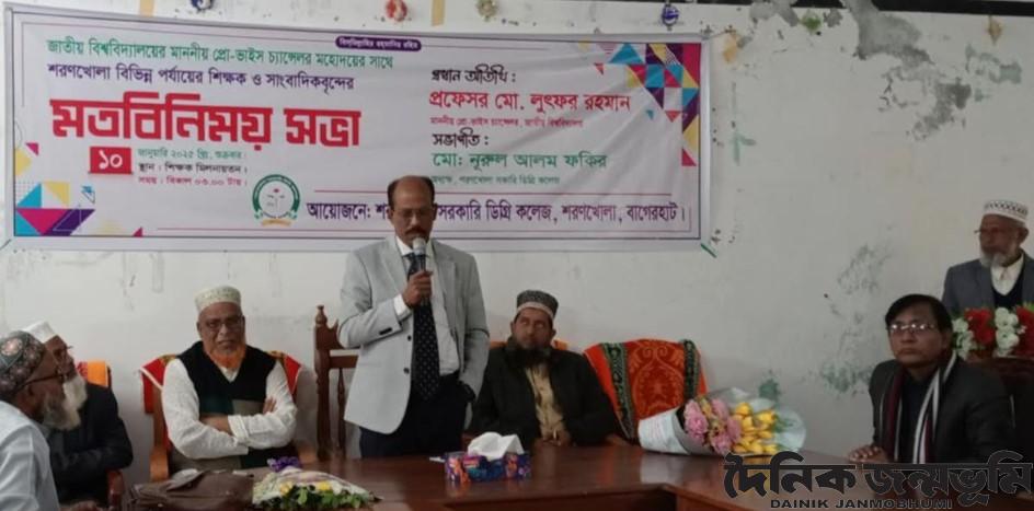 শুক্রবার সন্ধ্যায় শরণখোলা সরকারী কলেজে উপজেলার বিভিন্ন পর্যায়ের শিক্ষক ও সাংবাদিকদের সাথে মতবিনিময় সভায় প্রধান অতিথির বক্তব্যে তিনি উপরোক্ত কথা বলেন। শরণখোলা সরকারী কলেজের অধ্যক্ষ মোঃ নূরুল আলম ফকিরের সভাপতিত্বে অনুষ্ঠিত মতবিনিময় সভায় অন্যান্যের মধ্যে বক্তব্য রাখেন, উপজেলা জামায়াতে ইসলামীর আমীর মাওলানা মোঃ রফিকুল ইসলাম কবীর, রায়েন্দা রাজৈর ফাজিল মাদ্রাসার অধ্যক্ষ মাওলানা আঃ জলীল আনোয়ারী, বাগেরহাট জজ আদালতের পিপি এ্যাডভোকেট আঃ ওয়াদুদ মুক্তা, রাজাপুর মাধ্যমিক বিদ্যালয়ের প্রধান শিক্ষক মোঃ নান্না মিয়া, শরণখোলা প্রেসক্লাবের সভাপতি শেখ মোহাম্মদ আলী, রায়েন্দা বাজার ব্যবস্থাপনা কমিটির সেক্রেটারী মনিরুজ্জামান বাবুল তালুকদার, শরণখোলা সরকারী কলেজের সহকারী অধ্যাপক আলীম আল রেজা শোভন, সহকারী অধ্যাপক মোঃ শহীদুল ইসলাম দুলাল, সাংবাদিক আঃ মালেক রেজা ও গ্রামীন ব্যাংক কর্মকর্তা মোঃ এমাদুল হক প্রমূখ। সভা সঞ্চালনা করেন কলেজের সহকারী অধ্যাপক ডঃ মোঃ আব্দুল জলিল ও শিক্ষক বাবুল দাস।