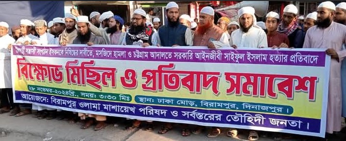 বিরামপুরে ইসকন নিষিদ্ধের দাবি ও আইনজীবি হত্যার প্রতিবাদে বিক্ষোভ