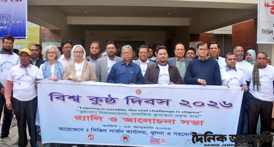 তথ্যবিবরণী : বিশ্ব কুষ্ঠ দিবস উপলক্ষ্যে আলোচনা সভা আজ রবিবার সকালে খুলনা সিভিল সার্জন কার্যালয়ের স্কুল হেলথ ক্লিনিকের সম্মেলনকক্ষে অনুষ্ঠিত হয়। এতে সভাপতিত্ব করেন ডেপুটি সিভিল সার্জন ডা. মো: মিজানুর রহমান। দিবসটি পালনে এবারের প্রতিপাদ্য ‘কুষ্ঠরোগ নিরাময়যোগ্য, সামাজিক কুসংস্কার প্রকৃত বাধা’। সভায় অতিথিরা বলেন, কুষ্ঠ রোগ ছোঁয়াচে নয়, নিরাময়যোগ্য। চিকিৎসার মাধ্যমে এ রোগ ভাল হয়। এই তথ্য প্রচার প্রচারণার মাধ্যমে সকলের কাছে পৌঁছে দিতে হবে। কুষ্ঠ রোগের উপসর্গ দেখা দিলে রোগীকে সাথে সাথে স্বাস্থ্য কমপ্লেক্সে নিয়ে যেতে হবে। এ রোগ সম্পর্কে সমাজে প্রচলিত কুসংস্কার থেকে সবাইকে সচেতন করতে পারলে ২০৩৫ সালের মধ্যে দেশে কুষ্ঠ নিয়ন্ত্রণ হবে বলে আশা করেন অতিথিরা। আলোচনা সভায় সাবেক যক্ষ্মা বিশেষজ্ঞ ডা. আনোয়ারুল আজাদ, বেসরকারি উন্নয়ন সংস্থা পিনোনে’র প্রজেক্ট অ্যান্ড মেডিকেল ডিরেক্টর সিস্টার ডাঃ রবার্তে সিএসএস আভা সেন্টারে ম্যানেজার মোঃ মোহসিন উদ্দিন, পিকেএসর এর ফেরদৌস কবীর, মো: আক্তার হোসেন প্রমুখ বক্তৃতা করেন। এসময় কুষ্ঠরোগ নিয়ে কাজ করা বিভিন্ন এনজিও প্রতিনিধিরা উপস্থিত ছিলেন। খুলনা সিভিল সার্জন কার্যালয় ও বিভিন্ন উন্নয়ন সহযোগী সংস্থা যৌথভাবে এ অনুষ্ঠানের আয়োজন করে। এর আগে সিভিল সার্জন কার্যালয় থেকে দিবসটি উপলক্ষ্যে বর্ণাঢ্য শোভাযাত্রা বের করা হয়। শোভাযাত্রায় বিভিন্ন এনজিও প্রতিনিধি ও শ্রেণি পেশার জনগণ অংশ নেন। উল্লেখ্য, কুষ্ঠরোগের প্রাথমিক লক্ষণ চামড়ায় হালকা বাদামী বা ফ্যাকাশে অথবা লালচে অবশ দাগ, দানা বা গুটি কিংবা চামড়া মোটা হয়ে যাওয়া। উপজেলা হাসপাতাল, কুষ্ঠ ক্লিনিক, কুষ্ঠ হাসপাতাল ও বক্ষব্যাধি ক্লিনিকসমূহে বিনামূল্যে কুষ্ঠরোগের চিকিৎসা পাওয়া যায়।
