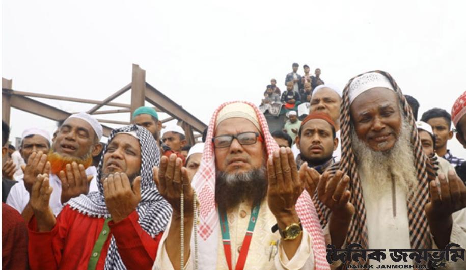 তিন দিনের প্রতীক্ষার অবসান ঘটে রোববার সকালে। জনসমুদ্রে হঠাৎ নেমে আসে পিনপতন নীরবতা। এরপর শুরু হয় মোনাজাত।