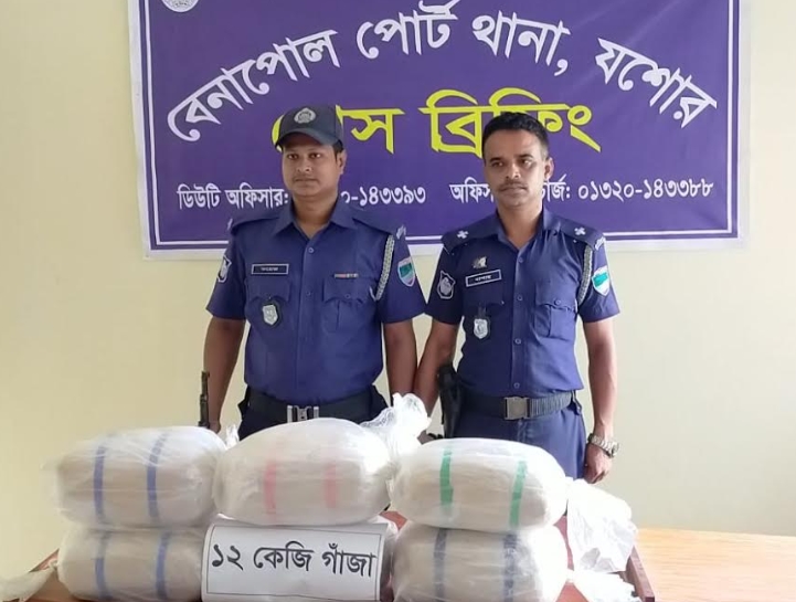 বেনাপোলে পুলিশি অভিযানে ১২ কেজি গাঁজা জব্দ