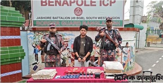 তিনি জানান, সোমবার রাতে বেনাপোল আন্তর্জাতিক চেকপোস্ট দিয়ে ভারতীয় পাসপোর্টধারী এক নাগরিক বাংলাদেশে প্রবেশের পর আইসিপি সীমান্ত এলাকা থেকে তাকে আটক করে বিজিবি। এসময় তার ট্রাভেল ব্যাগে তল্লাশি চালিয়ে নেশাজাতীয় উইনসিরেক্স (ডওঘঈঊজঊঢ) সিরাপ, ভারতীয় শাড়ি-থ্রিপিস, শাল-চাদর, ঘড়ি, কীটনাশক ও কসমেটিকস সামগ্রী পাওয়া যায়।