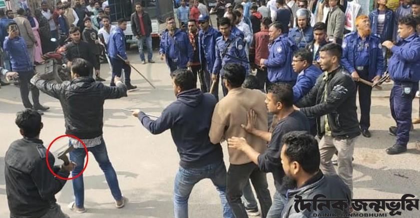 এস এম মুর্শিদ, পিরোজপুর : জাতীয়তাবাদী ছাত্রদলের ৪৬তম প্রতিষ্ঠাবার্ষিকী কর্মসূচীতে পিরোজপুরের ভান্ডারিয়ায় ছাত্রদলের দুই গ্রুপের সংঘর্ষে উভয় পক্ষের ৬ জন আহত হয়েছেন। বুধবার বেলা ১১ টায় স্থানীয় শহীদ মিনার চত্তরে এ ঘটনা ঘটে। সংর্ঘর্ষ এড়াতে উপজেলা প্রশাসন পরবর্তী সভা-সমাবেশ নিষিদ্ধ ঘোষণা করেছে। জানাযায়, ছাত্রদলের প্রতিষ্ঠাবার্ষিকী উপলক্ষে ভান্ডারিয়া উপজেলা ছাত্রদলের সদস্য সচিব শফিক রেজার নেতৃত্বে উপজেলা পরিষদ চত্তরে থেকে একটি মিছিল বের হয়। পরে মিছিলটি ভান্ডারিয়া বাজারের শহীদ মিনার সংলগ্ন সড়কে পৌঁছলে উপজেলা ছাত্রদলের যুগ্ম আহবায়ক শাহীরাজ ও পৌর ছাত্রদলের সদস্য সচিব শামীম ফরাজীসহ ছাত্রদলের একটি অংশ তাদেরকে রিজার্ভ পুকুর পাড়ে আয়োজিত সভা মঞ্চে যেতে বাধা প্রদান করেন। এসময় দুই গ্রুপের মধ্যে সংঘর্ষ বেধে যায় উভয় গ্রুপ পাইপ, লাঠি চাইনিজ কুঠার নিয়ে সংঘর্ষে জড়িয়ে পড়েন। এসময় জেলা ছাত্রদেল সহ-সভাপতি মাহাতাব হোসেন সজিব (৩৮), মো. বাকী বেপারী (৩৫), সুজন বেপারী (৩১), নবীন ফরাজী (১৮), লোকমান সরদার (৩৮) অপর অংশের মিজান হাওলাদার (৩৮) আহত হয়েছেন। আহত মিজান হাওলাদারকে বরিশাল শেবাচিম হাসপাতাল এবং বাকী আহতদের উপজেলা স্বাস্থ্য কমপ্লেক্সে ভর্তি করা হয়েছে। ভান্ডারিয়া থানার অফিসার ইনচার্জ আহমদ আনওয়ারসহ থানা পুলিশের একটি দল এসময় ঘটনা স্থলে উপস্থিত ছিলেন। তার নেতৃত্বে পুলিশ পরিস্থিতি নিয়ন্ত্রয়ণে আনে। পুলিশ বিকেলের সভা-সমাবেশ বন্ধ করে দেয়। আহত মাহাতাব হোসেন সজিব জানান, আমাদের শান্তিপূর্ন মিছিলে হামলা চালায় শাহীরাজ ও শামীম গ্রুপে। উপজেলা বিএনপি’র সদস্য সচিব মো. মনির হোসেন আকন ও পৌর বিএনপি’র সদস্য সচিব মাসুদ রানা পলাশ জানান, গত ১০ দিন ধরে ছাত্রদলের প্রতিষ্ঠা বার্ষিকীর কর্মসূচীর পালন করার জন্য প্রস্তুতি নেয়া হয় এবং বুধবার বিকেলে রিজার্ভ পুকুর পাড়ে দোয়া ও আলোচনা সভার আয়োজন করা হয়েছিল। উপজেলা ছাত্রদলের যুগ্ম আহবায়ক শাহীরাজ এবং উপজেলা যুবদলের বহিস্কৃত সদস্য সচিব শামীম হাওলাদার পৃথক কর্মসূচী পালনের প্রস্তুতি নেয়। এ কারণে দুই গ্রুপের কর্মসূচী পালনের জন্য পৃথক সময় নির্ধারণ করেও দেয়া হয়। বিষয়টি থানা পুলিশকেও অবহিত করা হয়েছিল। সকালে ছাত্রদলের সদস্য সচিব শফিক রেজার নেতৃত্বে ছাত্রদল তাদের নির্ধারিত সময় মিছিল নিয়ে বাজারে প্রবেশকালে ছাত্রদলের যুগ্ম আহবায়ক শাহীরাজ উপজেলা যুবদলের বহিস্কৃত সদস্য সচিব শামীম হাওলাদার এর নেতৃত্বে ছাত্রদল ও যুবদলের একাংশের নেতা কর্মীরা এ হামলা চালায়। উপজেলা যুবলের সদস্য সচিব (বহিস্কৃত) মো. শামীম হাওলাদার জানান, এ কর্মর্সূচী ছিল ছাত্রদলের এটা যুবদলের নয়। আমিসহ যুবদল নেতৃবৃন্দ সংঘর্