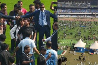 কলকাতার সল্টলেকের যুবভারতী স্টেডিয়ামে মেসিকে এক নজর দেখতে হাজির হয়েছিলেন অন্তত এক লাখ দর্শক। সকাল থেকেই স্টেডিয়াম ও আশপাশের এলাকায় উপচে পড়া ভিড় লক্ষ্য করা যায়। তবে এত বিপুল সংখ্যক দর্শক সামলাতে পুরোপুরি ব্যর্থ হয় স্থানীয় পুলিশ-প্রশাসন ও আয়োজকরা। এমনটাই জানা যায় ভারতীয় একাধিক গণমাধ্যমের প্রতিবেদনে।