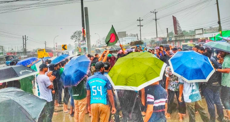 ভারী বৃষ্টি উপেক্ষা করে খুবি শিক্ষার্থীদের মহাসড়ক অবরোধ