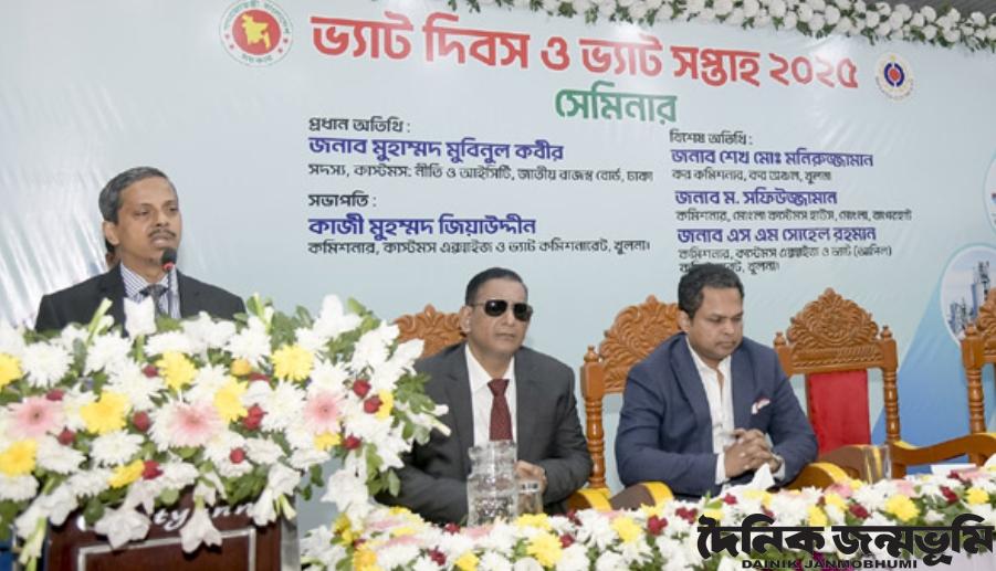 খুলনা কমিশনার, কাস্টমস এক্সাইজ ও ভ্যাট কমিশনারেট এর কমিশনার কাজী মুহম্মদ জিয়াউদ্দীন এর সভাপতিত্বে বিশেষ অতিথির বক্তৃতা করেন খুলনা কর অঞ্চলের কর কমিশনার শেখ মোঃ মনিরুজ্জামান, মোংলা কাস্টমস হাউসের কমিশনার ম. সফিউজ্জামান, খুলনা কর আপিল অঞ্চলের কমিশনার মোঃ সারোয়ার হোসেন চৌধুরী। মূল প্রবন্ধ উপস্থাপন করেন কাস্টমস, এক্সাইজ ও ভ্যাট (আপিল) কমিশনার এস. এম. সোহেল রহমান। স্বাগত বক্তৃতা করেন খুলনা কাস্টমস, এক্সাইজ ও ভ্যাট কমিশনারেটের অতিরিক্ত কমিশনার মোহাম্মদ সেলিম শেখ। ভ্যাটদাতাদের মধ্য থেকে বক্তব্য রাখেন মোঃ ফজলুর রহমান ও শঙ্কর কর্মকার। সেমিনারে সরকারি কর্মকর্তা, ব্যবসায়ী ও ভ্যাটদাতারা অংশ নেন। আগামী ১৫ ডিসেম্বর পর্যন্ত ভ্যাট সপ্তাহ চলবে।