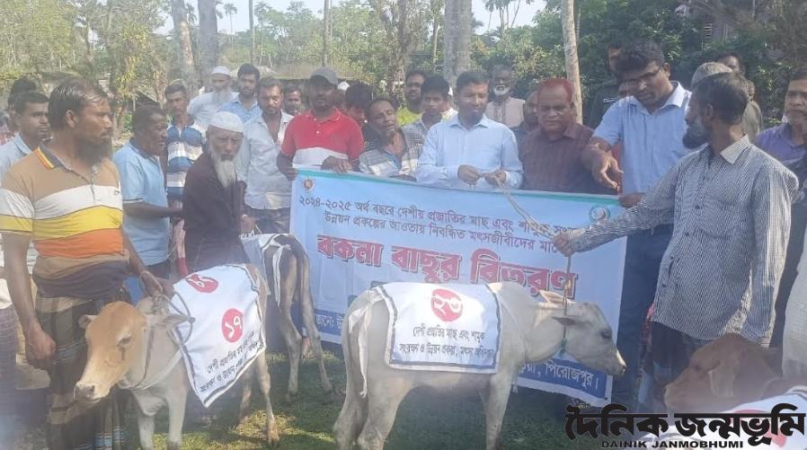 মঠবাড়িয়ায় জেলেদের মাঝে বকনা বাছুর বিতরণ