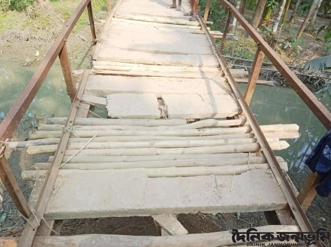 শাকিল আহমেদ, মঠবাড়িয়া (পিরোজপুর) : পিরোজপুরের মঠবাড়িয়া উপজেলার তুষখালী ইউনিয়নের ছোট মাছুয়া-জানখালী ও ভাইজোড়া গ্রামের লোহার পুলটি বেহাল দশায় পরিনত হয়েছে। জরাজীর্ণ লোহার পুলটি দিয়ে তিন গ্রামের হাজারো মানুষের যাতায়াত ও পণ্য পরিবহনে চরম দুর্ভোগ সৃষ্টি হয়েছে। দীর্ঘদিন সংস্কারের অভাবে স্থানীয়দের নিত্যদিনের প্রয়োজনে চরম দুর্ভোগ পোহাতে হচ্ছে। পুলটির বেহাল দশায় স্থানীয় কৃষকরা পণ্য পরিবহনের জন্য নিজস্ব উদ্যোগে বাঁশ দিয়ে মেরামত করে কোন রকম চলাচল করছেন। প্রবীন ও অসুস্থ রোগীদের নিয়ে পুলটি পারাপারে চরম ঝুঁকি ও ভোগান্তি পোহাতে হচ্ছে তাদের। ভাঙ্গা এ পুলটি উপজেলার তুষখালী ইউনিয়নের তোফেল আকন মাধ্যমিক বিদ্যালয়, গোলদার বাড়ি স্বতন্ত্র ইবতেদায়ী মাদ্রাসা, জানখালী সরকারী প্রাথমিক বিদ্যালয় ও জানখালী কওমী মাদ্রাসার ক্যাচমেট এরিয়ার মধ্যে রয়েছে। শিশু শিক্ষার্থীরা পুলটি পারাপারে প্রায়ই দুর্ঘটনার শিকার হয়। স্থানীয় ইউপি সদস্য শাহ আলম জানান, লোহার এ পুলটি ইতোপূর্বে একাধিকবার মেরামত করা হয়েছে। কিন্তু ঘনবসতিপূর্ণ এলাকায় কৃষকরা পণ্য পরিবহন করায় বারবার স্লিপার ভেঙে যায়। এখানে একটি কালভার্ট নির্মাণ করা প্রয়োজন। এ ব্যাপারে উপজেলা প্রকল্প বাস্তবায়ন কর্মকর্তা সফিকুল ইসলাম জানান, এটি দ্রুত মেরামতের জন্য উদ্যোগ নেওয়া হবে। এখানে যাতে একটি কালভার্ট নির্মাণ করা হয় সেজন্য চেষ্টা করা হবে।