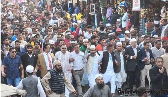 ডেস্ক রিপোর্ট : যশোর-৫ (মণিরামপুর) আসনে বিএনপি মনোনীত প্রার্থী রশীদ আহমাদ -এর পক্ষে ধানের শীষ প্রতীকের বিশাল নির্বাচনী প্রচারণা মিছিল অনুষ্ঠিত হয়েছে। যে মিছিলে জনতার ঢল নামে। বৃহস্পতিবার বিকাল সাড়ে ৪টার দিকে মণিরামপুর বটতলা মোড় থেকে মিছিলটি শুরু হয়। মিছিলে নেতৃত্ব দেন বিএনপির মনোনীত ধানের শীষ প্রতীকের প্রার্থী রশীদ আহমাদ। এ সময় তার সঙ্গে ছিলেন মণিরামপুর উপজেলা বিএনপির সাধারণ সম্পাদক আসাদুজ্জামান মিন্টু, যশোর আইনজীবি সমিতির সাধারন সম্পাদক এ্যাড. এম এ গফুর, উপজেলা বিএনপির সহসভাপতি জি এম মিজানুর রহমান, এ্যাড. মুজিবুর রহমান, সাংগঠনিক সম্পাদক আবু বক্কর সিদ্দিক, যুগ্ম সম্পাদক শামছুজ্জামান, স্বেচ্ছাসেবক দলের কেন্দ্রীয় কমিটির সাবেক সাংগঠনিক সম্পাদক ইফতেখার সেলিম অগ্নি, সাবেক সহকারী অ্যাটর্নি জেনারেল এবিএম গোলাম মোস্তফা তাঁজ, পৌর বিএনপির সাবেক সাংগঠনিক সম্পাদক জাহাঙ্গীর বিশ্বাস, বিএনপি নেতা কামরুজ্জামান শাহিন, কেন্দ্রীয় ছাত্রদলের সাবেক সহসভাপতি মুতাছিম বিল্লাহসহ দলটির কয়েক হাজার নেতা কর্মী ও সমর্থক। প্রচারণা মিছিলটি পৌর শহরের প্রধান সড়ক প্রদক্ষিণ করে আবার ধানের শীষের নির্বাচনী প্রধান কার্যালয়ে এসে শেষ হয়। এর আগে সমাবেশে প্রধান অতিথির বক্তব্য রাখেন ধানের শীষ প্রতীকের প্রার্থী রশীদ আহমাদ।
