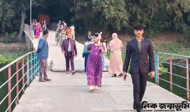 মনিরামপুরের রাজগঞ্জে ভাসমান সেতু দেখতে উপচে পড়া ভিড়