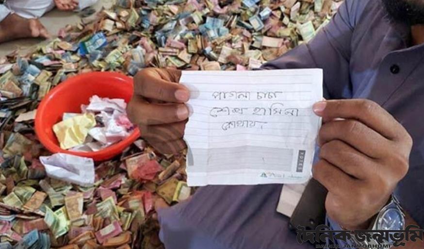 ওই চিরকুটে লেখা রয়েছে ‘পাগলা চাচা শেখ হাসিনা কোথায়’। পাগলা মসজিদের দানবাক্সে টাকার সঙ্গে মনোবাসনা পূরণের আকাঙ্ক্ষায় এমন চিঠি পাওয়া যায় প্রতিবারই।