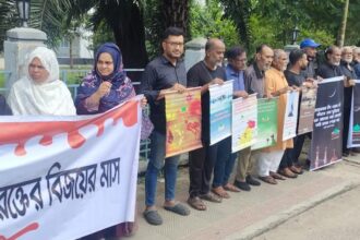 যশোর অফিস : মহররম মাসের তাৎপর্য এবং আশুরার গুরুত্ব প্রসঙ্গে গণসচেনতা তৈরির লক্ষ্যে এ মহান শোকের মাসকে গভীরভাবে শ্রদ্ধার সাথে স্মরণ করার লক্ষ্যে মানববন্ধন অনুষ্ঠিত হয়েছে। আজ দুপুরে যশোর প্রেসক্লাবের সামনে ইমামিয়া পাক দরবার শরিফ যশোর জেলা শাখার উদ্যোগে এ মানববন্ধন অনুষ্ঠিত হয়।