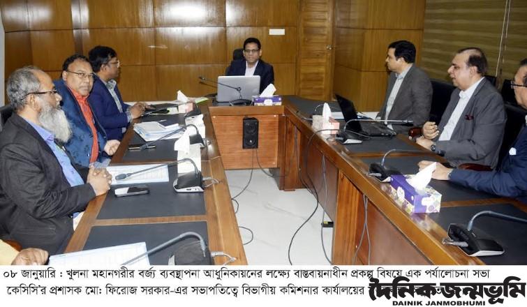 বিজ্ঞপ্তি : খুলনা মহানগরীর বর্জ্য ব্যবস্থাপনা আধুনিকায়নের লক্ষ্যে বাস্তবায়নাধীন প্রকল্প বিষয়ে এক পর্যালোচনা সভা বুধবার বিকেলে খুলনার বিভাগীয় কমিশনার কার্যালয়ের সভাকক্ষে অনুষ্ঠিত হয়। সভায় সভাপতিত্ব করেন কেসিসি’র প্রশাসক ও বিভাগীয় কমিশনার মো: ফিরোজ সরকার। সভাপতির বক্তৃতায় প্রশাসক মো: ফিরোজ সরকার বলেন, নগর বর্জ্যরে সুষ্ঠু ব্যবস্থাপনা একটি চ্যালেঞ্জ। স্বাস্থ্যকর পরিবেশ নিশ্চিত করতে সুষ্ঠু বর্জ্য ব্যবস্থাপনার গুরুত্ব তুলে ধরে তিনি বলেন খুলনা মহানগরীতে বর্জ্য ব্যবস্থাপনার আধুনিকায়নে প্রকল্প বাস্তবায়িত হচ্ছে। প্রকল্পটি চালু হলে বর্জ্য থেকে বিদ্যুৎ, ডিজেল ও কম্পোস্ট সার তৈরী করা সম্ভব হবে। উল্লেখ্য, এলজিইডি’র অধীনে খুলনা সিটি কর্পোরেশনের দ্বিতীয় নগর অঞ্চল উন্নয়ন প্রকল্পের আওতায় বাংলাদেশ সরকার ও এশীয় উন্নয়ন ব্যাংকের অর্থায়নে কেসিসি’র শলুয়া ল্যান্ডফিলে ৫৫ কোটি টাকা ব্যয়ে ওয়েস্ট ম্যানেজমেন্ট প্লান্ট নির্মাণের কাজ চলমান আছে। ইতোমধ্যে প্রকল্পের ৫৩ শতাংশ কাজ সম্পন্ন হয়েছে। চলতি বছরের জুনে প্রকল্পের কাজ সমাপ্ত হবে বলে আশা করা যাচ্ছে। প্লান্টটি চালু হলে দৈনিক ৩৭৫ টন বর্জ্য রিসাইক্লিং-এর মাধ্যমে ডিজেল, বিদ্যুৎ ও কম্পোস্ট সার উৎপাদন করা সম্ভব হবে। কেসিসি’র প্রধান প্রকৌশলী মশিউজ্জামান খান, প্রধান বর্জ্য ব্যবস্থাপনা কর্মকর্তা প্রকৌশলী মো: আব্দুল আজিজ, প্রজেক্ট ডাইরেক্টর মো: হামিদুল হক, ওয়েস্ট কনসার্ণ কনসালট্যান্ট-এর ম্যানেজিং পার্টনার আবু হাসনাত মো: মাকসুদ সিনহা ও ইফতেখার এনায়েত উল্লাহ সহ সংশ্লিষ্ট কর্মকর্তাগণ সভায় উপস্থিত ছিলেন।