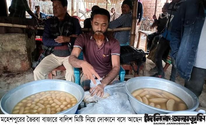 জিয়াউর রহমান জিয়া, মহেশপুর (ঝিনাইদহ) : অজ পাড়াগায়ে তৈরি হচ্ছে মিষ্টি (বালিশ’মিষ্টি)! সেই মিষ্টির স্বুখ্যাতি দেশের গন্ডি পেরিয়ে এখন যাচ্ছে বিদেশেও। “বালিশ” নামটা সকলের কাছেই পরিচিত। মানুষ দিনের ক্লান্তি শেষে বালিশ মাথায় দিয়ে আরামে বিছানায় ঘুমায়। ঝিনাইদহ সহ সারাদেশের মানুষ বালিশ মাথায় দিয়ে ঘুমায় বটে। তবে আরেক লোভনীয় সুস্বাদু বালিশ খায়ও! শুনে অনেকে অবাক হতে পারেন। কিন্তু আসলেই তাই। তুলা দিয়ে তৈরি কাপড়ে মোড়ানো তুলতুলে বালিশ খাওয়ার কথা শুনলে যেকোনো মানুষেরই অবাক হওয়ার তো কথাই। কিন্তু সত্যিই বালিশ খাওয়া যায়! আর যদি সেটা হয় ঝিনাইদহের দেশ বিখ্যাত সুস্বাদু ‘বালিশ’ মিষ্টি। তাহলে তো কথায় নেই। অজ পাড়াগায়ের এ মিষ্টির স্বুখ্যাতি দেশের গন্ডি পেরিয়ে এখন যাচ্ছে বিদেশেও। বিস্ময়করভাবে একেকটি মিষ্টির ওজন দুই কেজি। বালিশের মতো দেখতে তাই ক্রেতারাই এ মিষ্টির নামকরণ করেছেন। জেলা শহর থেকে ৬০ কিলোমিটার দূরে অবস্থিত সীমান্তবর্তী উপজেলা মহেশপুরের ভৈরবা বাজার। এ বাজারে সপ্তাহে দুই দিন,শনি ও মঙ্গলবার দুপুর ২টার পর থেকে বিকিকিনি চলে গভীর রাত পর্যন্ত। এ বাজারেই গত ৩৫ বছর মিষ্টি বিক্রি করেন হযরত আলী। তার নিজের হাতে তৈরি বালিশ মিষ্টি কিনতে ক্রেতাদের ভিড় লেগেই থাকে। বিশাল-বিশাল গামলায় কয়েক ধরনের মিষ্টি বিক্রি করেন তিনি। তবে একটিতে থাকে ৩ কেজি ওজনের ভিন্নধর্মী বালিশ মিষ্টি। আর অন্যগুলোয় চলে রসগোল্লা,চমচমসহ আরও হরেক রকমের মিষ্টি। বাজারে মিষ্টির দোকান বেশ কয়েকটি থাকলেও তার দোকানে ক্রেতাদের ভিড় লেগেই থাকে।