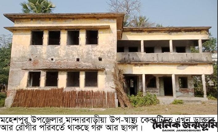 জানা যায়, চিকিৎসকসহ জনবল পদায়ন না হওয়ায় দেড়যুগের বেশি সময় আগে বন্ধ হয়ে গেছে ঝিনাইদহের মহেশপুর উপজেলার মান্দারবাড়িয়া উপ-স্বাস্থ্য কেন্দ্রটি। খুলে পড়ছে ইট ও প্লিষ্টার। চুরি হয়ে গেছে জানালা-দরজা। পরিণত হয়েছে জঙ্গল আর গোয়ালে। অথচ সরকারি খাতাই এখনও চালু এই উপ-স্বাস্থ্য কেন্দ্রটি।