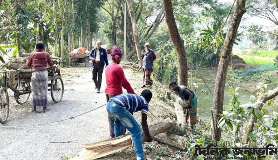 রঞ্জন কুমার মল্লিক, মাদারীপুর : মাদারীপুরের ডাসার উপজেলার বালিগ্রাম ইউনিয়নের ধুলগ্রামের রাস্তা ও খালের পাড় থেকে লাখ টাকার গাছ কেটে নিচ্ছে স্থানীয় কয়েক ব্যক্তি। স্থানীয় ইউনিয়ন ভূমি অফিসের ৫শ গজের মধ্যে এই গাছ কেটে নিলেও কোন ব্যবস্থা নিচ্ছেনা তহশিলদার।
