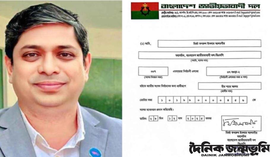 সোমবার (২৯ ডিসেম্বর ২০২৫) বিএনপি মহাসচিব মির্জা ফখরুল ইসলাম আলমগীর স্বাক্ষরিত এক আনুষ্ঠানিক চিঠিতে এ মনোনয়নের বিষয়টি নিশ্চিত করা হয়। বিষয়টি নিশ্চিত করেছেন জেলা বিএনপির সভাপতি রেজাউল করিম বাদশাহ।