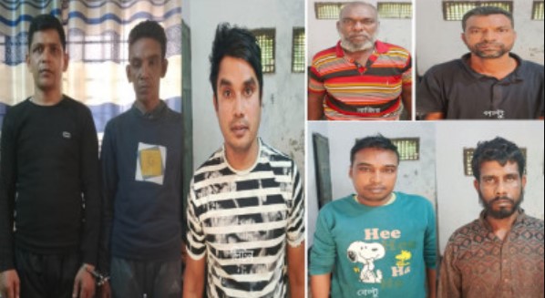 জন্মভূমি রিপোর্ট : মেহেরপুরে আন্তঃজেলা দস্যু ও চোর চক্রের মূলহোতাসহ আটজনকে গ্রেপ্তার করেছে পুলিশ। বৃহস্পতিবার (১৪ নভেম্বর) রাত ৮ টার সময় মেহেরপুর পুলিশ সুপার (এসপি) মাকসুদা আকতার খানম পিপিএম এই তথ্য নিশ্চিত করেছেন। এর আগে বুধবার রাত থেকে বৃহস্পতিবার মেহেরপুর জেলা শহর, গাংনী ও কুষ্টিয়া জেলার দৌলতপুর উপজেলার বিভিন্ন স্থানে পৃথক অভিযান চালিয়ে এসব দস্যুদের গ্রেপ্তার করা হয়েছে। এসময় তাদের কাছ থেকে একটি মোটরসাইকেল, একটি ব্যাটারিচালিত পাখিভ্যান, একটি আলগামন জব্দ করা হয়। গ্রেপ্তাররা হলেন- গাংনী উপজেলার সাহেবনগর গ্রামের ফকির মণ্ডলের ছেলে দস্যু সর্দার নাজির আহমেদ (৫০), মেহেরপুর সদর উপজেলার রায়নগর গ্রামের (কাজিপুরপাড়া) এলাকার আব্দুল হাকিমের ছেলে দস্যু সদস্য সাহেব আলী (৪৫), নওয়াপাড়া গ্রামের কুরবান আলীর ছেলে দস্যু বেল্টু ওরফে ফারুক হোসেন (৩৪), চোরাই মটরসাইকেল কেনা-বেচা চোর চক্রের সদস্য কাজিপুর হাজিপাড়া এলাকার সাবেক সেনা সদস্য নুর হোসেন ওরফে নুরু মিলিটারির ছেলে সাবেক ইউপি সদস্য লিটন হোসেন (৪২), কুষ্টিয়া জেলার দৌলতপুর উপজেলার মথুরাপুর গ্রামের পশ্চিমপাড়া এলাকার রেজাউল হকের ছেলে পারভেজ আহম্মেদ পল্টু (৪৭), একই গ্রামের মৃত্যু আশরাফ আলীর ছেলে ব্যাটারিচালিত পাখিভ্যান চোরাই চক্রের সদস্য দেলোয়ার হোসেন (৪৫) ও ইজিবাইক চোর চক্রের দুই সদস্য ঝিনাইদহ জেলার কাঞ্চননগর গ্রামের সুমন চোধুরী (৩৫) ও একই জেলার খাজুরা গ্রামের নাজমুল মীর (৪০)। এদের মধ্যে দস্যু সর্দার হত্যা মামলায় যাবজ্জীবন সাজাপ্রাপ্ত আসামি।