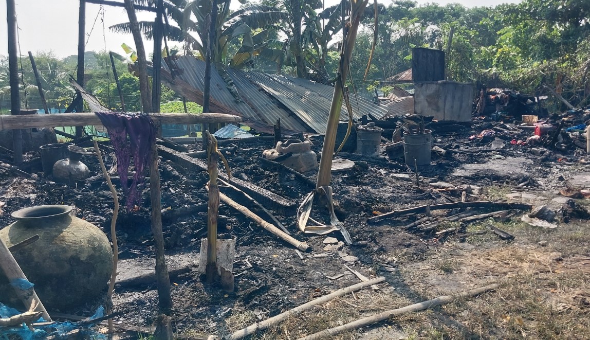 ক্ষতিগ্রম্ত গোলাম রসুল বলেন, আমরা পরিবার নিয়ে সবাই বেড়াতে গেছিলাম। ঘরে আমার নানী একাই ছিলেন। স্থানীয়রা তাকে উদ্ধার করেছে। খবর পাওয়ার পর এসে দেখি আমার সব শেষ হয়ে গেছে। কিচ্ছু নাই। চাল,ডাউল, কাপর সব শেষ। সব হারিয়ে আমি নি:স্ব হয়ে গেছি। আমি চার ছেলেমেয়ে সহ ৭জনকে নিয়ে খোলা আকাশের নিচে বসে আছি।