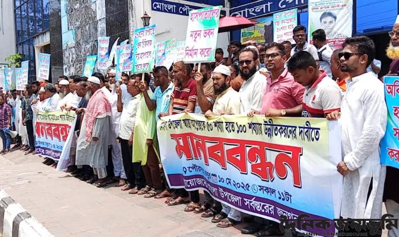 মানববন্ধন শেষে হাসপাতালকে ৫০ শয্যা থেকে ১০০ শয্যায় উন্নীতকরনের দাবিতে গণস্বাক্ষর কর্মসুচি পালন করা হয়।