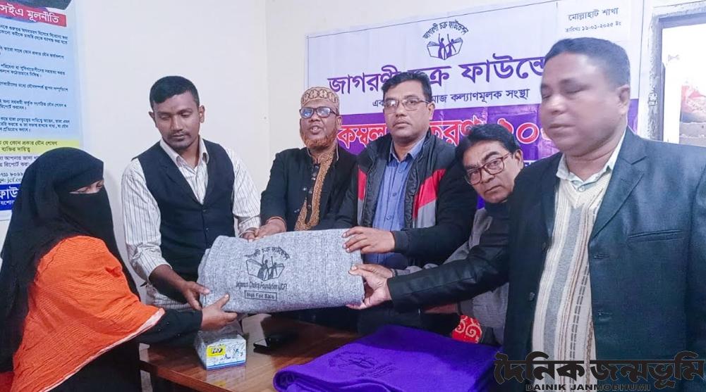 মোল্লাহাট (বাগেরহাট) প্রতিনিধিঃ বাগেরহাটের মোল্লাহাটে বেসরকারি উন্নয়ন সংস্থা জাগরণী চক্র ফাউন্ডেশন (জেসিএফ) একটি জাতীয় সমাজকল্যাণমূলক সংস্থা এর উদ্যোগে শীতার্তদের মাঝে কম্বল বিতরণ করা হয়েছে। বৃহস্পতিবার সকালে উপজেলা সদরের মাস্টার পাড়া জেসিএফ এর কার্যালয়ে অনুষ্ঠিত উক্ত কম্বল বিতরণ অনুষ্ঠানে প্রধান অতিথি ছিলেন জেসিএফ এর গোপালগঞ্জ জোনের সহকারী উপ-পরিচালক মেঃ জামাল উদ্দিন লিটন। সভাপতিত্ব করেন এরিয়া ম্যানেজার (ফকিরহাট এরিয়া)মোঃ বাবুল আক্তার। অন্যান্য অতিথিবৃন্দ ছিলেন ইউপি সদস্য মোঃ বাবুল সরদার, সমাজ সেবক মাসুম শেখ, মিশকাত সরদার, সাংবাদিক জেহাদ আলী, শরিফুল ইসলাম, মীর মাসুদ, লিপ্টন, মাহফুজ প্রমুখ।