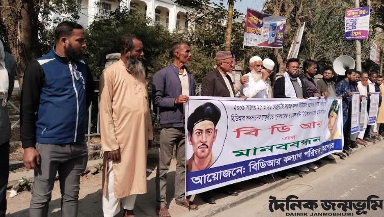 বিডিআর কল্যান পরিষদ যশোরের সমন্বয়ক ওয়াহিদ খানের নেতৃত্বে ঘন্টাব্যাপী মানববন্ধনে চাকুরীচ্যুত যশোরের ১৬৩ জন বিডিআর সদস্য ও তার পরিবারের সদস্যরা অংশ নেন। এ সময় বক্তব্য রাখেন চাকরিচ্যুত বিডিআর সদস্য আব্দুর সামাদ, আব্দুল কাদের ,মিজানুর রহমান প্রমুখ।