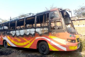 যশোর প্রতিনিধি : যশোর সদরের বাহাদুরপুর (মেহগনি তলা) এলাকায় পার্কিংয়ে থাকা একটি বাসে দুর্বৃত্তরা আগুন দিয়েছে বলে অভিযোগ উঠেছে। শুক্রবার (১৪ ফেব্রুয়ারি) রাত আনুমানিক সোয়া একটার দিকে যশোর-মাগুরা মহাসড়কের পাশে এ ঘটনা ঘটে।