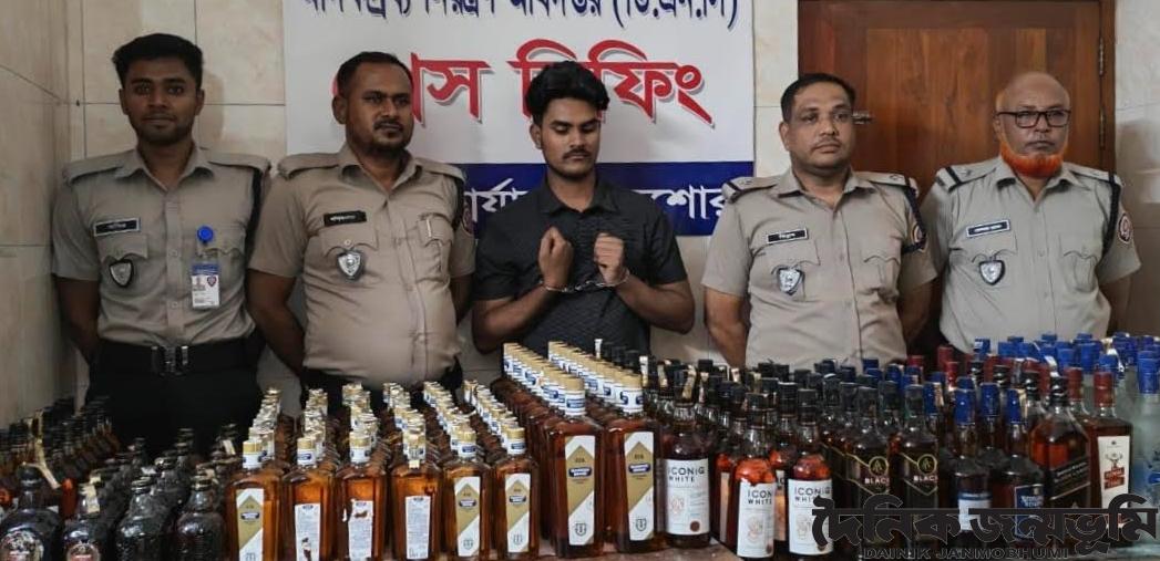 যশোর : যশোরে মাদকদ্রব্য নিয়ন্ত্রণ অধিদপ্তরের মাদকবিরোধী অভিযানে ২৬৫ বোতল বিদেশি মদসহ এক যুবককে গ্রেফতার করা হয়েছে। রোববার (৯ নভেম্বর ২০২৫) রাত সাড়ে দশটার দিকে যশোর খুলনা রোডে, যশোর সদরের বসুন্দিয়া ঘুনি রাস্তার মোড় রেলগেট সংলগ্ন যমুনা ফিড এলাকার প্রতিষ্ঠানের উত্তর পাশ থেকে তাকে আটক করা হয়।