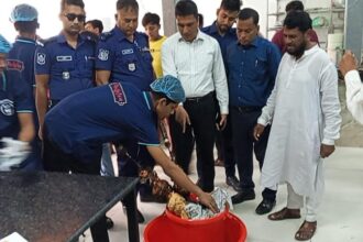 যশোর অফিস : যশোর পৌরসভার মার্কেটের বিপরীতে এম কে রোডে অবস্থিত নতুনভাবে গড়ে ওঠা অবস্থিত অভিজাত রেস্তোরাঁ পাঁচ ফোড়নে এক লাখ টাকা জরিমানা করা হয়েছে। আজ বুধবার অভিযান চালায় জেলা জাতীয় ভোক্তা অধিকার সংরক্ষণ অধিদপ্তর। অভিযানে নেতৃত্ব দেন যশোর জেলা কার্যালয়ের সহকারী পরিচালক মো.সেলিমুজ্জামান। অভিযানকালে ফ্রিজে বাসি গ্রিল সংরক্ষণ, মেয়াদহীন কাসুন্দি, সস ও মেওনেজ রাখার অভিযোগে প্রতিষ্ঠানটির মালিকের কাছ থেকে এক লাখ টাকা জরিমানা আদায় করা হয়। সহকারী পরিচালক মো. সেলিমুজ্জামান জানান, তাদের কাছে অভিযোগ আসে ‘পাঁচ ফোড়ন’ রেস্টুরেন্টে নিয়মিত বাসি ও পচা খাবার পুনরায় রান্না করে বিক্রি করা হয়। বিশেষ করে গ্রীলের জন্য ব্যবহৃত মুরগির মাংস সংরক্ষণ করে পরদিন বিক্রি করা হয়। তিনি বলেন, অভিযানকালে দেখা যায়,নোংরা ফ্রিজে গ্রীলের সঙ্গে কাঁচা মুরগির মাংস রাখা হয়েছে। সেই মাংস মোড়ানো ছিল পত্রিকার কাগজে, যার কালি মাংসে লেগে ছিল। যা স্বাস্থ্যের জন্য অত্যন্ত ঝুঁকিপূর্ণ এবং ক্যান্সারের কারণ হতে পারে। অভিযানে সদর উপজেলা স্যানিটারি ইন্সপেক্টর মহিবুর রহমান, ক্যাব এর প্রতিনিধি ও পুলিশ সদস্যরা উপস্থিত ছিলেন।