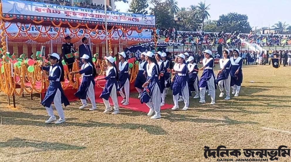 যশোর প্রতিনিধি : যশোর জেলা প্রশাসনের উদ্যোগে মহান বিজয় দিবস উপলক্ষে বর্ণাঢ্য কুচকাওয়াজ ও ডিসপ্লে অনুষ্ঠিত হয়েছে। মঙ্গলবার (১৬ ডিসেম্বর) সকাল ৮টা ৫০ মিনিটে যশোর শহরের শামস উল হুদা স্টেডিয়ামে এ কর্মসূচি শুরু হয়, যা উৎসবমুখর পরিবেশে চলমান ছিল।