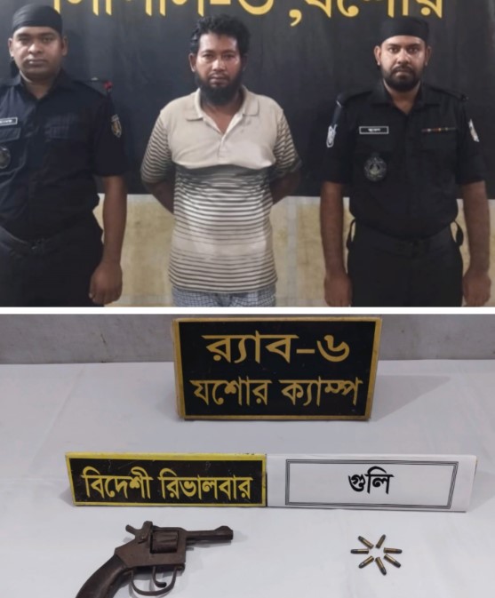 যশোর প্রতিনিধি : যশোরে র্যাবের অভিযানে জসিম সরদার নামে এক সন্ত্রাসীকে গ্রেফতার ও তার কাছ থেকে একটি রিভলবার ও ৭ রাউন্ড গুলি উদ্ধার করেছে।রোববার গভীর রাতে যশোরের অভয়নগর উপজেলার সিরাজকাঠি এলাকায় অভিযান চালিয়ে তাকে গ্রেফতার করা হয়। জসিম অভয়নগর উপজেলার সিরাজকাঠি গ্রামের মৃত ওয়াজেদ আলী সরদারের ছেলে।