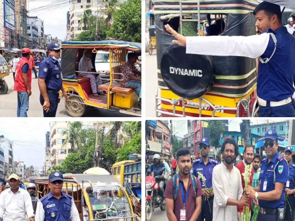 যশোরে সড়কে ফিরেছে ট্রাফিক পুলিশ, সাথে আছে শিক্ষার্থীরাও