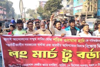 যশোরে হাদি হত্যার প্রতিবাদে ‘লংমার্চ টু বর্ডার’