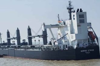 যার প্রথম চালান হিসেবে ৫৬ হাজার ৯৫৯ মেট্রিক টন গম নিয়ে এমভি নর্স স্ট্রাইড জাহাজটি শনিবার চট্টগ্রাম বন্দরের বহিঃনোঙরে পৌঁছেছে।