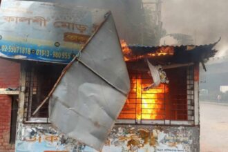 রাজধানীতে পুলিশ বক্সে আগুন দিয়েছে অটোরিকশা চালকরা