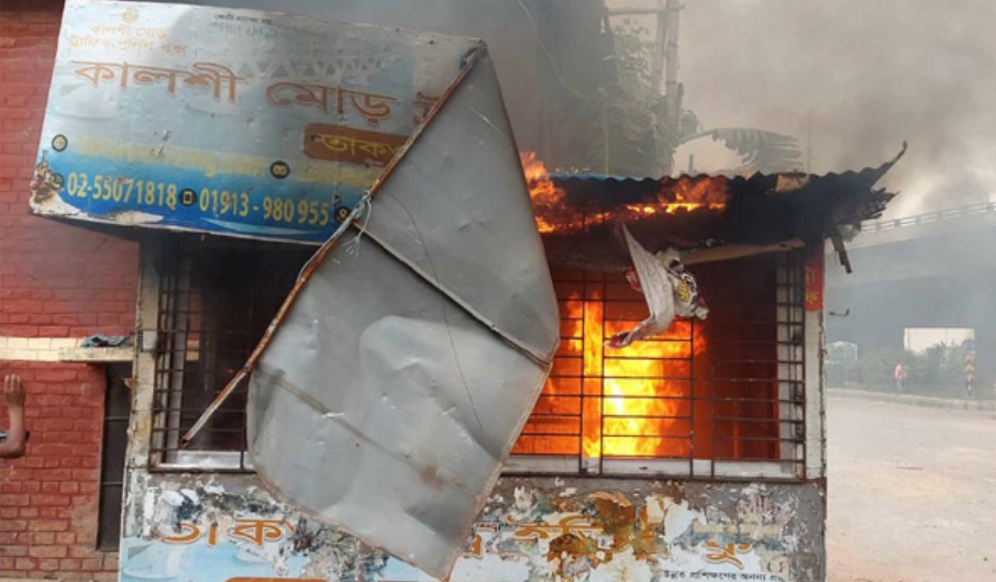 রাজধানীতে পুলিশ বক্সে আগুন দিয়েছে অটোরিকশা চালকরা