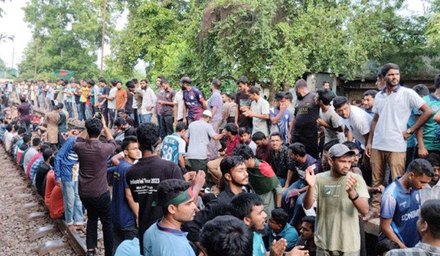 এর আগে বিভিন্ন হল থেকে বিশ্ববিদ্যালয়ের কেন্দ্রীয় গ্রন্থাগারের সামনে জড়ো হতে থাকেন শিক্ষার্থীরা। সেখান থেকে বিশাল মিছিল নিয়ে ক্যাম্পাসের বিভিন্ন সড়ক ও হল প্রদক্ষিণ করে স্টেশন বাজারের রেলপথে জড়ো হন তারা।