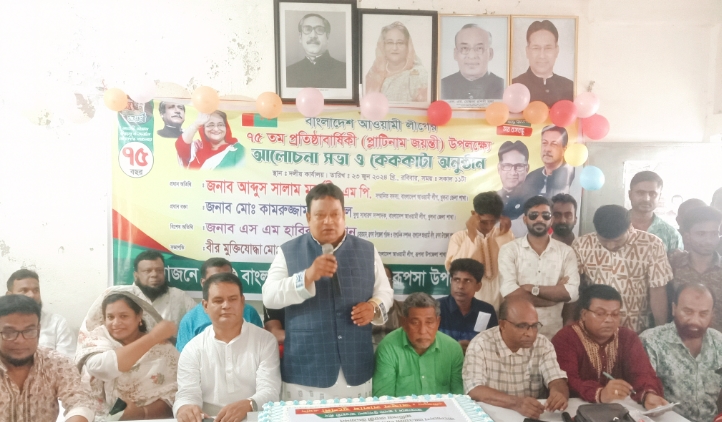 রূপসা প্রতিনিধিঃ রূপসা উপজেলা আওয়ামীলীগের আয়োজনে বাংলাদেশ আওয়ামীলীগের ৭৫ তম প্রতিষ্ঠাবার্ষিকী (প্লাটিনাম জয়ন্তী) পালন উপলক্ষে আলোচনা সভা ও কেক কাটা অনুষ্ঠান ২৩ জুন সকালে উপজেলা আওয়ামীলীগের কার্যালয়ে অনুষ্ঠিত হয়। আলোচনা সভায় জুম কনফারেন্সের মাধ্যমে প্রধান অতিথির বক্তৃতা করেন খুলনা-৪ আসনের সংসদ সদস্য আব্দুস সালাম মূর্শেদী। প্রধান বক্তা ছিলেন খুলনা জেলা আওয়ামীলীগের যুগ্ম সাধারণ সম্পাদক মোঃ কামরুজ্জামান জামাল। উপজেলা আওয়ামীলীগ সভাপতি, বীরমুক্তিযোদ্ধা মোঃ কামাল উদ্দীন বাদশার সভাপতিত্বে বিশেষ অতিথির বক্তৃতা করেন রূপসা উপজেলা পরিষদের নব নির্বাচিত চেয়ারম্যান এসএম হাবিবুর রহমান, খুলনা জেলা আওয়ামীলীগ সদস্য ফ,ম আ: সালাম, পাপিয়া সরোয়ার শিউলী। আওয়ামীলীগ নেতা সরদার আবুল কাশেম ডাবলু ও উপজেলা আওয়ামীলীগের যুগ্ম সাধারণ সম্পাদক অধ্যাপক শ্যামল কুমার দাসের পরিচালনায় বক্তৃতা করেন রূপসা উপজেলা আওয়ামীলীগের সহ-সভাপতি আরিফুর রহমান মোল্যা, সৈয়দ মোর্শেদুল আলম বাবু, সাবেক জেলা স্বেচ্ছাসেবকলীগ নেতা মোঃ মোতালেব হোসেন, দপ্তর সম্পাদক আকতার ফারুক, শ্রম বিষয়ক সম্পাদক গাজী মোঃ আলী জিন্নাহ, রূপসা উপজেলা পরিষদের নব নির্বাচিত মহিলা ভাইস চেয়ারম্যান শারমিন সুলতানা রুনা, আওয়ামীলীগ নেতা অধ্যাপক আল মামুন সরকার, রূপসা উপজেলা আওয়ামীলীগ সদস্য শেখ জমির হোসেন, ঘাটভোগ ইউনিয়ন পরিষদ চেয়ারম্যান মোল্যা ওয়াহিদুজ্জামান মিজান, রূপসা পূজা উদযাপন পরিষদের সভাপতি শক্তিপদ বসু, আওয়ামীলীগ নেতা প্রভাষক ওয়াহিদুজ্জামান, মোস্তাফিজুর রহমান মোস্তাক, বিনয় কৃষ্ণ হালদার, সরদার মিজানুর রহমান, তাহিদুল ইসলাম মোল্যা, মুনীর হোসেন মোল্যা, মঈন উদ্দিন শেখ, আছাবুর রহমান মোড়ল, ফরিদ শেখ, উপজেলা শ্রমিকলীগের সভাপতি আঃ সত্তার শেখ, রূপসা উপজেলা স্বেচ্ছাসেবকলীগের সভাপতি রুহুল আমিন রবি, সাধারন সম্পাদক রাজীব দাস, শেখ জুলফিকার আলী, আরিফুর রহমান, সরদার জাকির হোসেন, হারুন মোল্যা,নাসির হোসেন সজল, ব্রজেন দাস, বিধান চন্দ্র, মৃনাল সরকার, আনিসুজ্জামান মিঠু, চয়নিকা খানম, লিপিকা রানী দাস, ইনতিয়াজ শেখ, কামরুজ্জামান সোহেল, হায়দার আলী, সরদার জসীম উদ্দীন, মোস্তাফিজুর রহমান হেলাল, সফিকুর রহমান ইমন, রবিউল ইসলাম, আবুল কালাম আজাদ, রতন মন্ডল, খায়রুজ্জামান সজল, সাইফুল ইসলাম শাওন, ইরান মোল্যা, জাহিদুর রহমান, আঃ রউফ শিকদার, ইন্দ্রজিত বিশ্বাস, দাউদ আলী শেখ, আলমগীর হোসেন শ্রাবণ, মাসুম সরদার, সামসুল আলম বাবু, শিমূল হোসেন, মঈন উদ্দীন, কৃষকলীগ নেতা মাহামুদুল হাসান শামীম, স্বেচ্ছাসেবলীগ নেতা মুসা মোল্যা সবুজ, সোহেল পারভেজ, ইমলাক মল্লিক, মেহেদী হাসান, মামুন নীরব, মোস্তাইন শেখ মুন্না, মামুন শেখ, ইয়াকুব শে