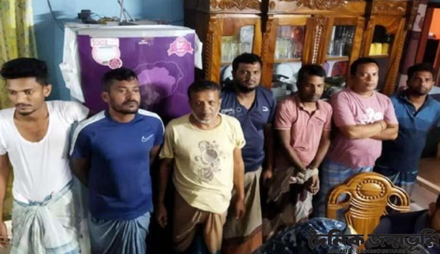 আটককৃতরা হলেন রূপসা উপজেলার মিলকি দেয়াড়ার মৃত শেখ নুরুদ্দীনের ছেলে মোঃ জুনায়েদ (৫৫), মোঃ জাহিদুজ্জামান (৪৮), ও মোঃ মোশারফ হোসেন (৪২); মোঃ জোনায়েদের ছেলে শেখ জিদান (২৬), লুৎফর রহমানের ছেলে মোঃ মিজানুর (৪৩) ও আজানুর মুন্সি (৩৬); মৃত মোজাহার উদ্দীনের ছেলে জহির উদ্দীন (৩৬) এবং মৃত আলতাফ হোসেনের ছেলে মোঃ মাসুদ রানা (৪০)।