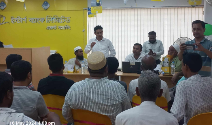 লোহাগড়া (নড়াইল) প্রতিনিধি : নড়াইলের লোহাগড়ায় ইস্টার্ন ব্যাংক পিএলসি লোহাগড়া আউটলেট এর গ্রাহক সমাবেশ অনুষ্ঠিত হয়েছে। বৃহস্পতিবার (১৬ মে) বিকালে লোহাগড়া বাজারের স্বর্ণপট্টি এলাকায় আউটলেটটিতে এ সমাবেশ অনুষ্ঠিত হয়। লোহাগড়ার আউটলেট এর মালিক মোহাম্মদ মোল্যা সহ ব্যাংক কর্তৃপক্ষ জানান, এখানে সকল প্রকার সঞ্চয়ী ও চলতি হিসাব খোলা হচ্ছে। এছাড়াও কৃষি ঋণ, ক্ষুদ্রঋণ, ব্যবসায়ী ঋণ, বাড়ি নির্ণানের জন্য ঋণ, এবং ক্রেডিট কার্ড প্রদান করা হচ্ছে। মহিলাদের জন্য আকর্ষনীয় আমানত ও ঋণ গ্রহণের সুবিধা রয়েছে। গ্রাহক সমাবেশে মুফতি মোঃ বাকি বিল্লাহ, বিশিষ্ট ব্যবসায়ী সৈয়দ আঃ সবুর, নিরাপদ সড়ক ও রেলপথ বাস্তবায়ন পরিষদের চেয়ারম্যান সৈয়দ খায়রুল আলম, লোহাগড়া পৌর প্রেসক্লাবের সভাপতি শিমুল হাসান, বিশিষ্ট ব্যবসায়ী হেমায়েত হোসেন, খোকন মোল্ল্যা, সোহেল রানা লাক্সমি, ইঞ্জিনিয়ার মোঃ তাইবুল হাসান, সিরাজ মোল্যা বাজারের ব্যবসায়ী সহ বিভিন্ন শ্রেণিপেশার মানুষ গ্রাহক সমাবেশে উপস্থিত ছিলেন।