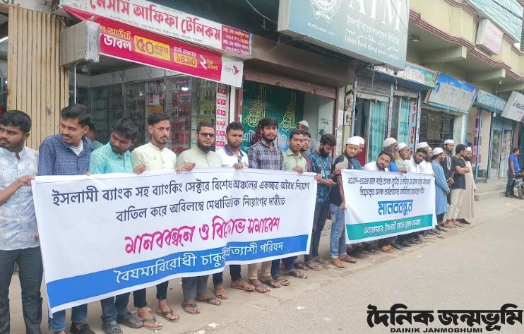 শরণখোলা আঞ্চলিক অফিসঃ শরণখোলায় ইসলামী ব্যাংকের অবৈধ নিয়োগ বাতিলের দাবীতে মানববন্ধন করেছে ইসলামী ব্যাংক গ্রাহক ফোরাম ও বৈষম্যবিরোধী চাকুরী প্রত্যাশী পরিষদ। ৬ অক্টোবর (সোমবার) সকালে উপজেলা সদর রায়েন্দা বাজারের শেরে-এ-বাংলা রোডে ইসলামী ব্যাংকের সামনে এ মানববন্ধন করে। মানববন্ধনে বক্তব্য রাখেন, ইসলামী ব্যাংক গ্রাহক ফোরাম ও বৈষম্যবিরোধী চাকুরী প্রত্যাশী পরিষদের মাওঃ মনিরুজ্জামান, রেজাউল ইসলাম সাগর ও ইমাম হোসেন প্রমূখ। বক্তারা অনতিবিলম্বে এস.আলমের অবৈধ নিয়োগকৃত কর্মকর্তাদের নিয়োগ বাতিল, বিদেশে পাচারকৃত টাকা দেশে ফিরিয়ে আনা সহ মেধার ভিত্তিতে নিয়োগ প্রদানের দাবী জানান।
