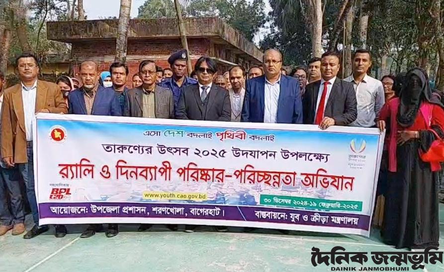 শরণখোলা আঞ্চলিক অফিস : তারুণ্যের উৎসব ২০২৫ উদ্যাপন উপলক্ষ্যে শরণখোলায় র্যালি ও দিনব্যাপী পরিস্কার-পরিচ্ছন্নতা অভিযান পরিচালিত হয়েছে। মঙ্গলবার দুপুরে অনুষ্ঠিত র্যালীতে প্রধান অতিথি ছিলেন বাগেরহাট জেলা প্রশাসক আহমেদ কামরুল হাসান। উপজেলা প্রশাসন আয়োজিত পরিস্কার-পরিচ্ছন্নতা র্যালী উপজেলা পরিষদ এলাকা প্রদক্ষিণ করে অফিসার্স ক্লাব চত্বরে গিয়ে শেষ হয়। র্যালী শেষে দিনব্যপী পরিচ্ছন্নতা অভিযান উদ্বোধন করেন বাগেরহাট জেলা প্রশাসক। শরণখোলা উপজেলা নির্বাহী অফিসার সুদীপ্ত কুমার সিংহ বলেন,বাগেরহাট জেলা প্রশাসক আহমেদ কামরুল হাসান মঙ্গলবার দিনব্যপী উপজেলায় সরকারী কর্মকর্তাদের সাথে মতবিনিময়সহ বিভিন্ন কর্মসূচীতে অংশ এবং শীতার্ত মানুষের মাঝে কম্বল বিতরণ করেন।