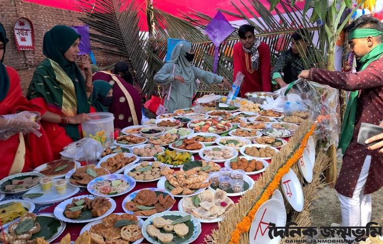 পিঠা উৎসবকে ঘিরে কলেজ ক্যাম্পাসে ছাত্র ছাত্রী ও সাধারণ মানুষের উপচে পড়া ভিড় লক্ষ্য করা গেছে।